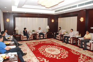 在公司貴賓室,朱會長與我公司和卓爾棉業(yè)集團的負責人進行了座談。市委副書記、市長吳錦參加了座談會,并就當前棉花及棉紡行業(yè)的有關情況同朱會長交換了意見。