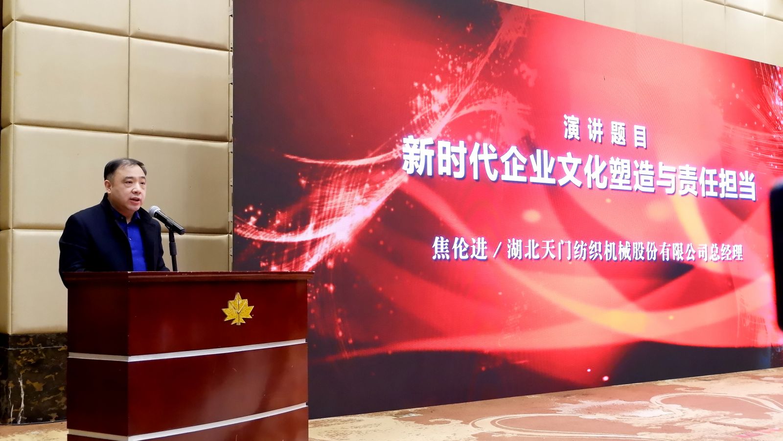在會(huì)上,湖北天門(mén)紡織機(jī)械股份有限公司總經(jīng)理焦倫進(jìn)作了《新時(shí)代企業(yè)文化塑造與責(zé)任擔(dān)當(dāng)》主題發(fā)言。他表示,這次傳媒大會(huì)的召開(kāi),對(duì)于充分發(fā)揮新聞媒體的宣傳和輿論導(dǎo)向作用,推進(jìn)行業(yè)發(fā)展,進(jìn)一步提高企業(yè)的知名度和美譽(yù)度,具有非常重要的意義。他談道,天門(mén)紡機(jī)歷來(lái)非常重視新聞媒體的宣傳導(dǎo)向作用,公司內(nèi)部創(chuàng)辦了“天門(mén)紡機(jī)報(bào)”,建立了“湖北天門(mén)紡織機(jī)械股份有限公司官網(wǎng)”、“天門(mén)紡機(jī)微信公眾號(hào)”,利用微信平臺(tái)在公司內(nèi)部建立了8個(gè)微信工作群,獲得了中紡聯(lián)“創(chuàng)新管理獎(jiǎng)”。