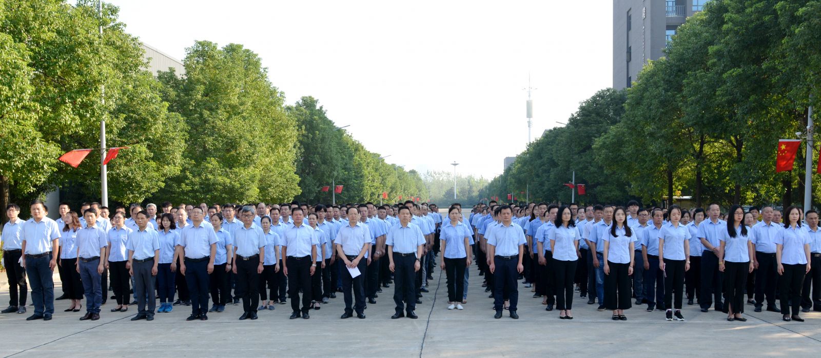 2019年9月30日早晨,一輪紅日從東方升起,給大地涂抹上一層金輝。天門紡機400多名員工在公司廣場列成方隊,為即將舉行的升國旗、唱國歌活動作準(zhǔn)備。
