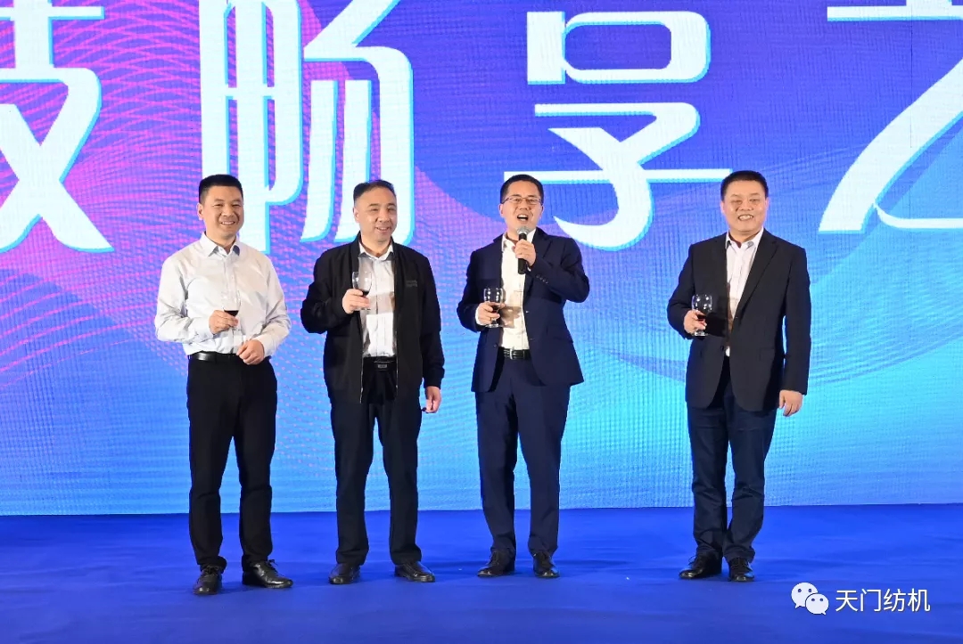 在12日的天門紡機(jī)“科技暢享之夜”答謝晚宴上,天門紡機(jī)總經(jīng)理助理?xiàng)钗姆逯略~。中國(guó)棉紡織行業(yè)協(xié)會(huì)會(huì)長(zhǎng)董奎勇,天門紡機(jī)總經(jīng)理焦倫進(jìn),全國(guó)棉紡織科技信息中心主任、《棉紡織技術(shù)》期刊社社長(zhǎng)劉強(qiáng),天門紡機(jī)總經(jīng)理助理?xiàng)钗姆骞餐瑸橥硌缱>啤?/span>