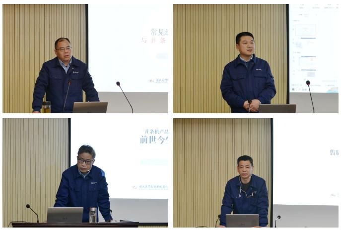 17名售后服務(wù)人員作了2023年度工作總結(jié)及技術(shù)交流;樊早兵總監(jiān)作專業(yè)知識講座;鄭強(qiáng)總工程師安排布置了T1系列并條機(jī)改進(jìn)工作事項(xiàng);楊文峰副總經(jīng)理作案例分享;于少波主任作經(jīng)驗(yàn)分享。