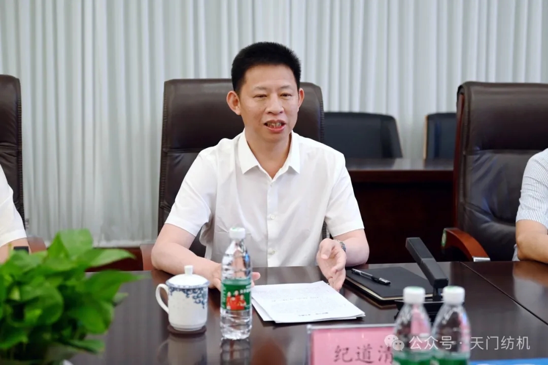 2024年8月27日,湖北省十三屆人大常委會黨組書記、副主任、十四屆全國人大代表王玲攜同十三、十四屆全國人大代表李霞,在天門市委書記、市人大常委會主任紀(jì)道清 ,市人大常委會黨組書記、副主任董清平,市委常委、秘書長高文博的陪同下調(diào)研了天門紡機(jī)及天門服裝電商產(chǎn)業(yè)園,十三屆全國人大代表、天門紡機(jī)董事長沈方勇全程陪同調(diào)研。