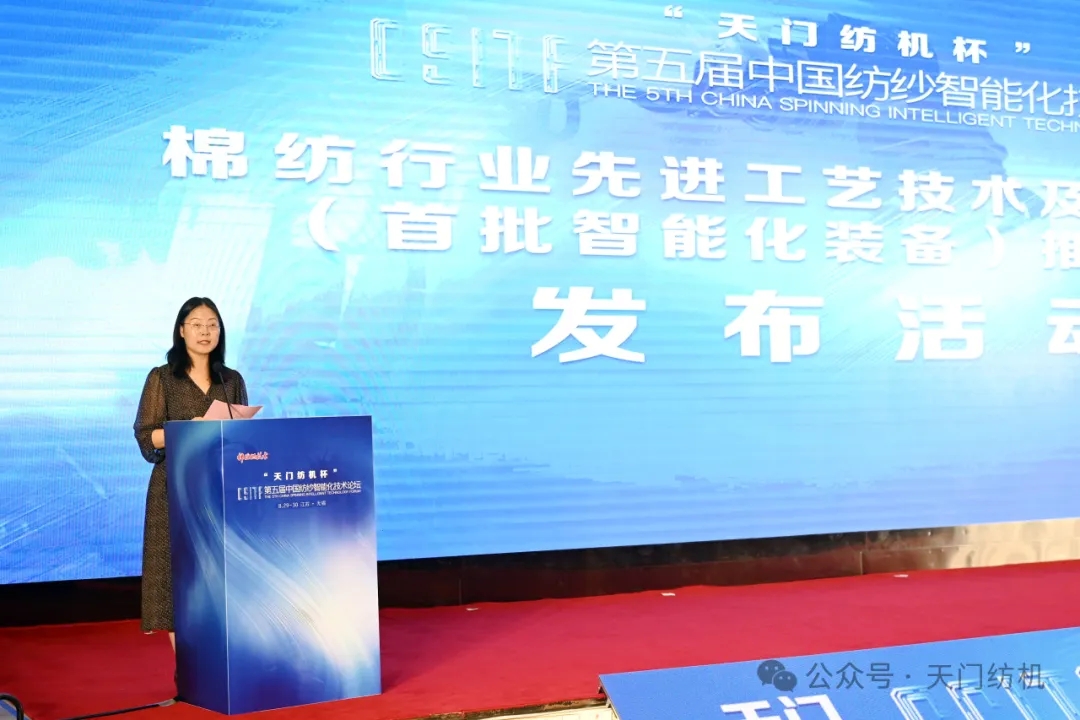 《棉紡織技術(shù)》期刊社副總經(jīng)理冉軍麗發(fā)布“棉紡行業(yè)先進(jìn)工藝技術(shù)及裝備換新推薦目錄”