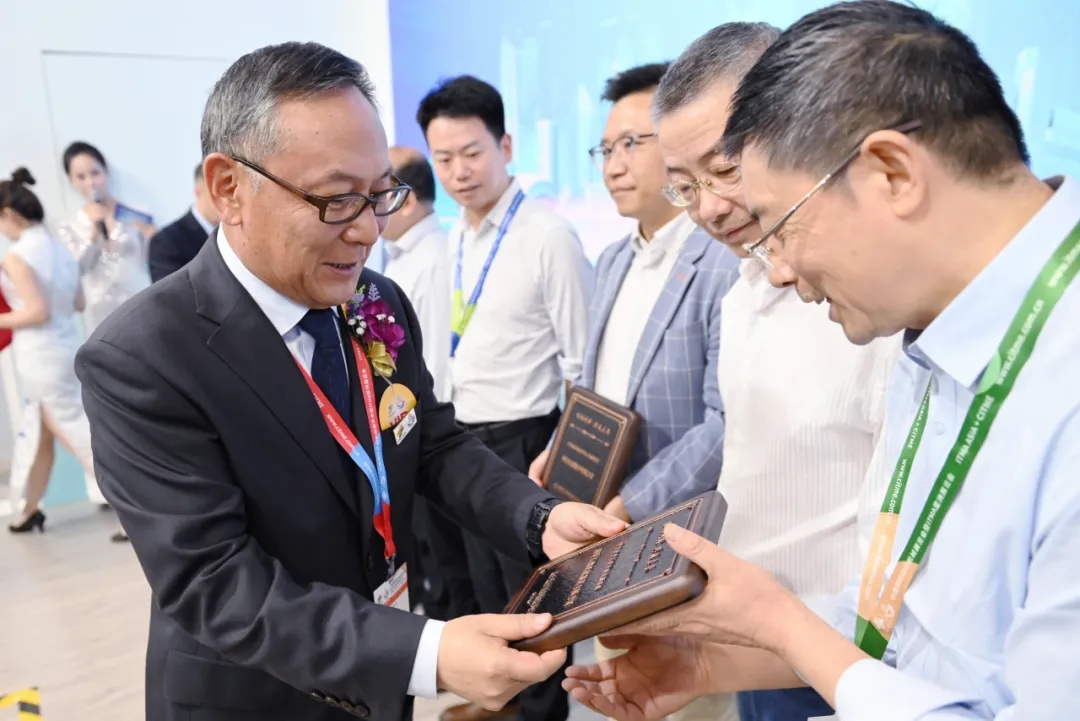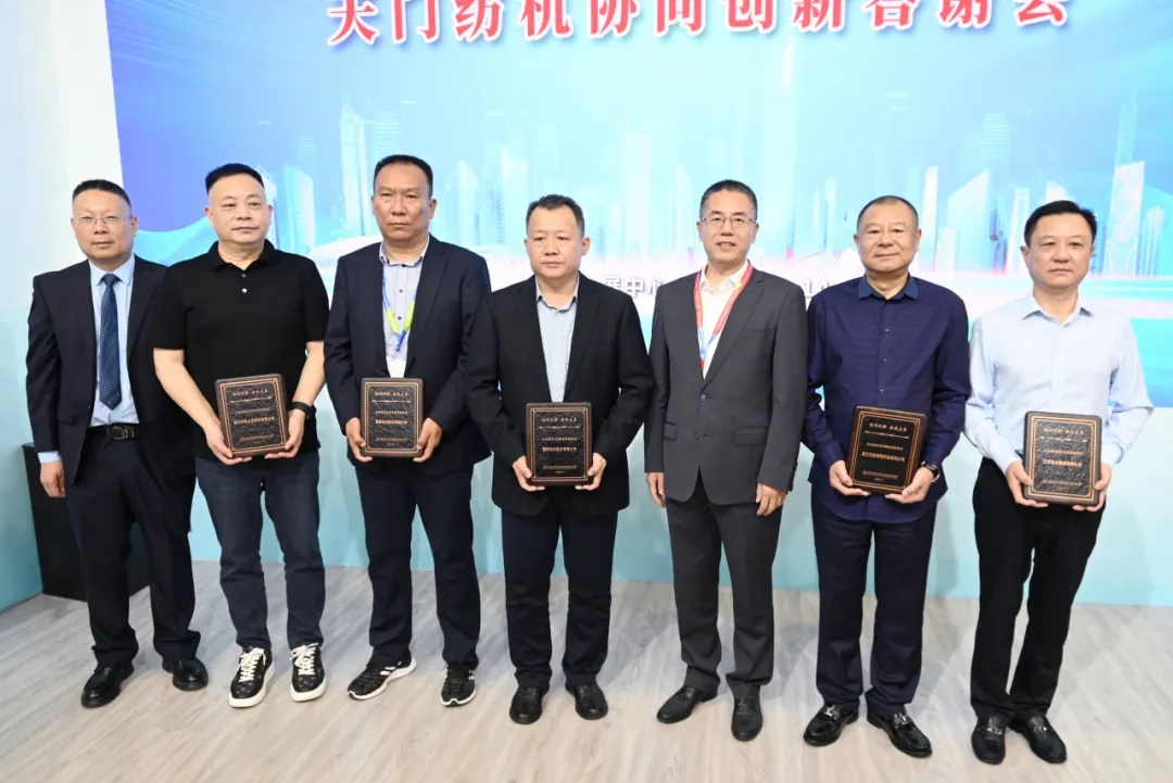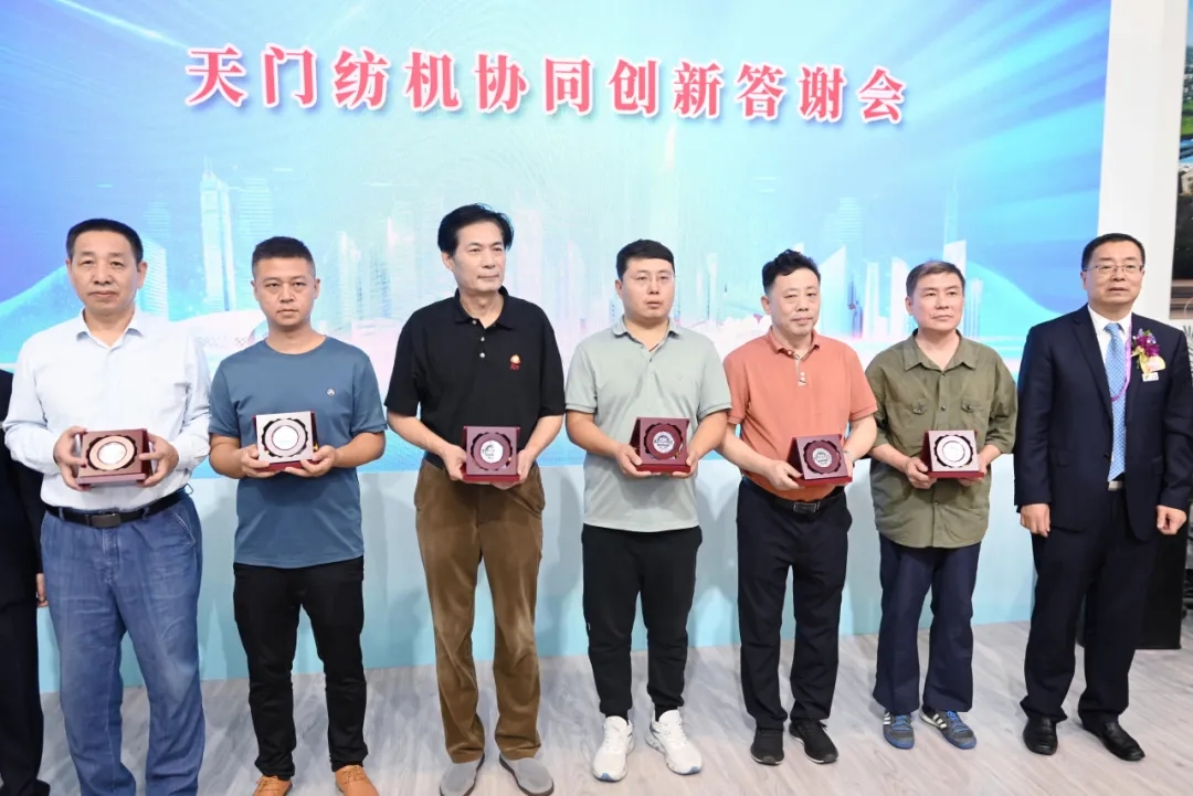 天門紡機總經(jīng)理焦倫進宣布在協(xié)同創(chuàng)新中作出突出貢獻的單位和個人名單,中國紡織工業(yè)聯(lián)合會徐迎新副會長為倪俊龍董事長、陳冰教授、曹中華博士、陸惠文先生頒發(fā)紀念章,為臺達、匯川、南通五洲等3家企業(yè)代表頒發(fā)紀念牌。