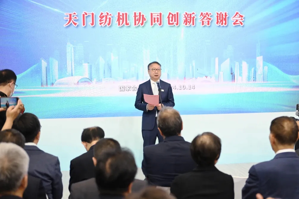 中國紡織工業(yè)聯(lián)合會會長孫瑞哲作了重要講話。他首先代表中國紡織工業(yè)聯(lián)合會對活動的舉辦表示熱烈祝賀!向為天門紡機并條技術(shù)進步作出貢獻的功臣們致以崇高敬意!他在給予天門紡機“是當之無愧的棉紡并條專家”的充分肯定與最高贊譽時強調(diào):作為紡機行業(yè)的中堅力量,天門紡機扎根本土、布局全球、銳意創(chuàng)新、深耕專業(yè),在推動民族紡機品牌自立自強中貢獻卓著。天門紡機的每一次成功與飛躍,是企業(yè)自身追求卓越、勇攀高峰的回報,也是產(chǎn)業(yè)生態(tài)高效協(xié)同、價值共創(chuàng)的成果。他希望:在新征程上,天門紡機及其合作伙伴繼往開來、攜手共進、一以貫之推進紡機行業(yè)行穩(wěn)致遠,助力中國紡織行業(yè)新質(zhì)生產(chǎn)力發(fā)展。