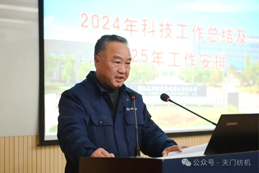 2025年1月22日下午,天門(mén)紡機(jī)隆重舉行2024年科技工作總結(jié)及2025年工作安排大會(huì),全體研發(fā)人員、工藝技術(shù)人員、“五小”成果獲獎(jiǎng)人員、公司領(lǐng)導(dǎo)及各部門(mén)負(fù)責(zé)人等80余人參加了會(huì)議。