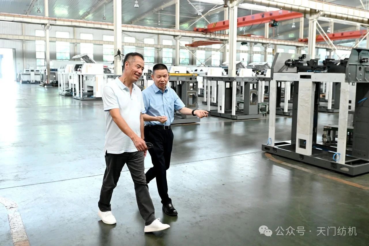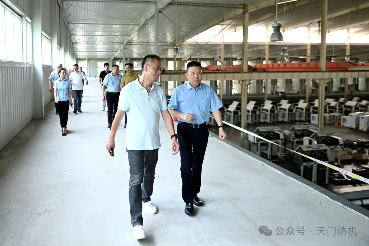 孫偉挺董事長一行在沈方勇董事長的陪同下,深入車間一線,親身感受了天門紡機繁忙的生產氛圍及“智慧工廠”建設的火熱場面。